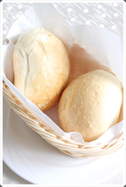 麵包熱呼呼的外酥內軟還不錯,比較像歐式麵包。