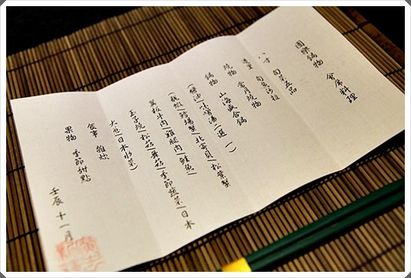 餐桌上的竹子卷軸再搭配一杯熱茶超應景的…