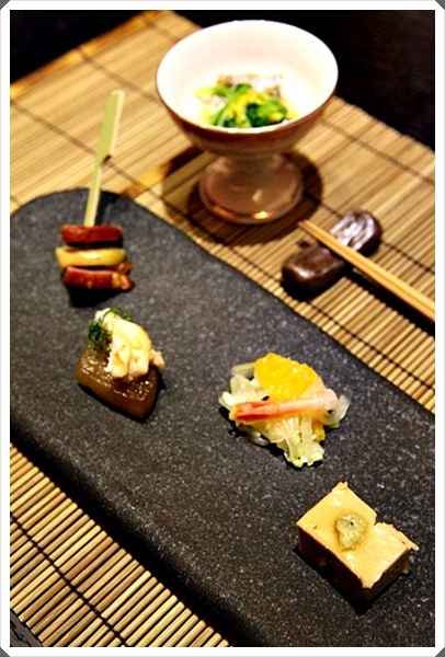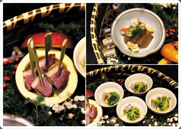 首先送上桌的旬菜五品就讓我們驚叫聲連連了…