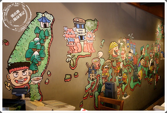 為什麼牆上畫的感覺是台灣小吃店的感覺咧,我有點看不出來其他的地圖是不是日本,