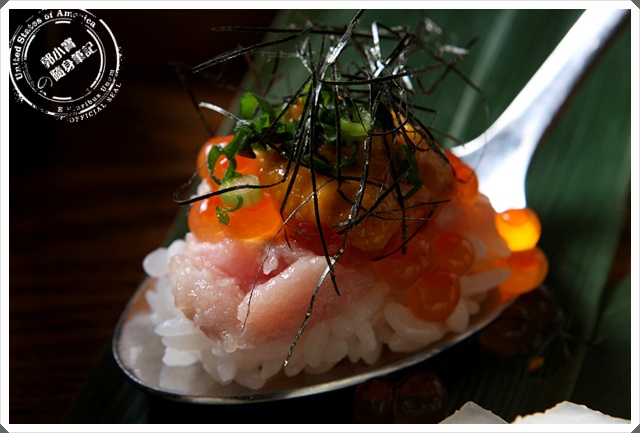 這一小口感覺跟海鮮丼飯差不多,多了海膽的甜味也不錯,但感覺似乎這邊海膽的品質有點不穩,