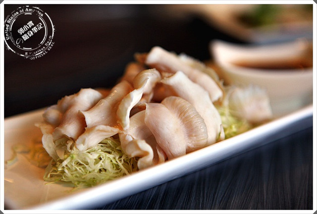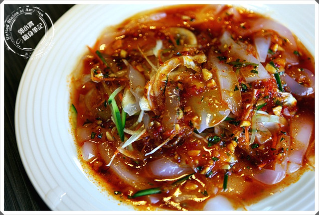 這道菜的石材取自新鮮曼波魚腸,口感極好的彈性,幾乎沒人吃得出來這是甚麼,但是不變的是