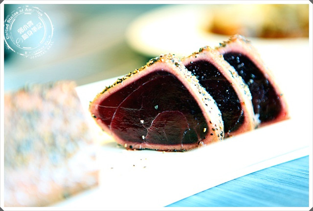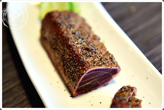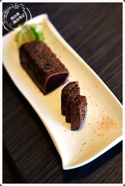這一道菜就真的讓我頗為讚賞,使用黑鮪赤身微煎搭配黑楜椒及岩鹽,這樣像牛排的料理方式,
