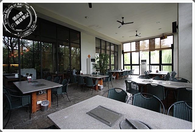 | 建築物兩側也有提供冷氣的烤肉區,落地窗外就可以看到山景,難怪晚上都可以吸引很多烤肉的人潮。 |