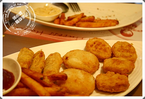 紅肉似乎有裹著起司下去炸,反正就是蕭耗甲的啦!!