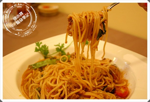 LYNN點的義大利麵,香味濃郁,還真的有一點點小辣度,