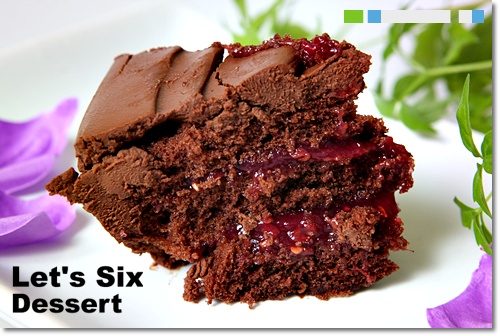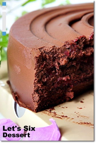 覆盆子巧克力蛋糕隱隱約約就看的到那鮮紅的覆盆子…