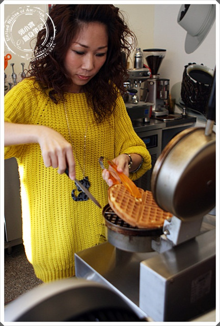 既然是一個美麗的女老闆娘,看她熟練的動作料理著鬆餅,但是為什麼一樣的鬆餅機,