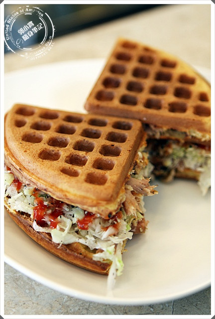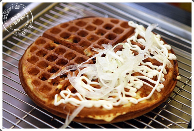 第一次吃到鹹的鬆餅真的很特別,其實跟吃漢堡差不多,只是鬆餅當成漢堡的麵包,