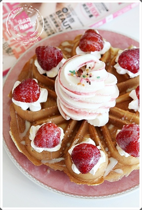 上的奶油草莓,搭配著熱呼呼的鬆餅,口感層次相當的豐富,淋上煉乳香氣更是濃郁,兩個人分享一份剛剛好