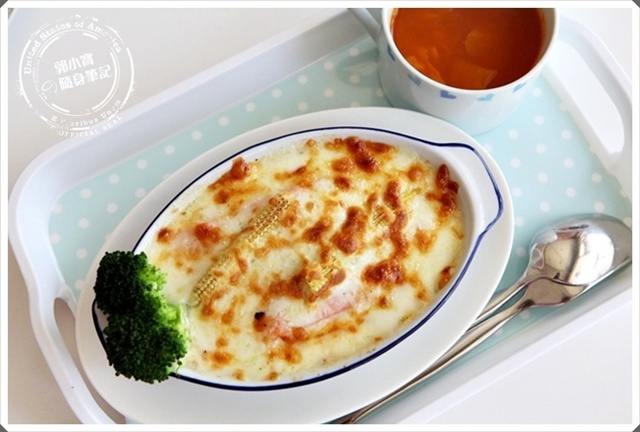 拉絲的起司還有擋不住的香濃氣味撲鼻而來,焦黃的表皮加上一碗濃郁的洋蔥湯,洋蔥湯清爽美味,
