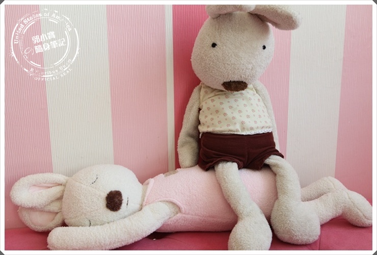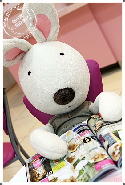店內也有許多很可愛的布偶娃娃,依然走的是粉嫩風格,如果你累了也可以學小兔一樣趴著休息一下唷,