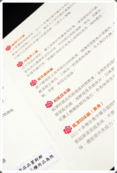 除了最特別的玫瑰花鍋以外,還有菊花風味鍋,其實當天很想試試看菊花鍋,