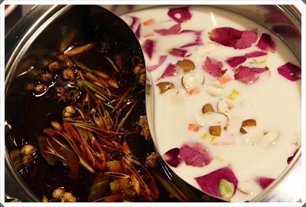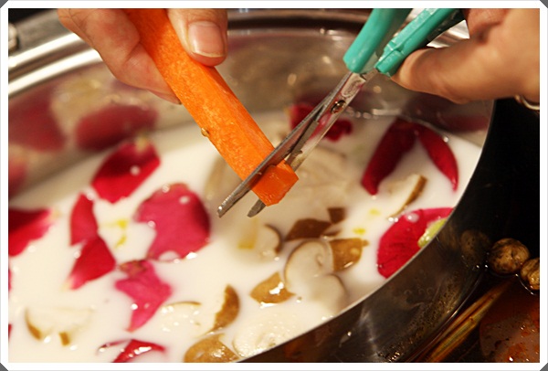 我只能說真的是特別的鍋品,牛奶鍋加上有機食用的玫瑰花,湯頭還滿好喝的,淡淡的玫瑰花香,