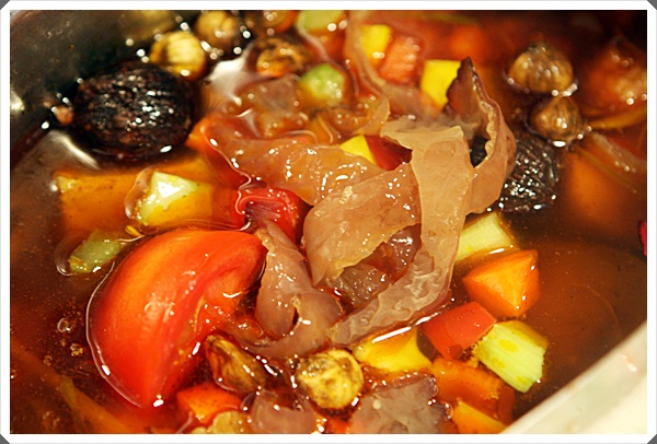 店家會附上小剪刀,讓客人自己DIY,放進蔬果熬了一陣子後,湯頭喝起來的味道更鮮甜了。 |
