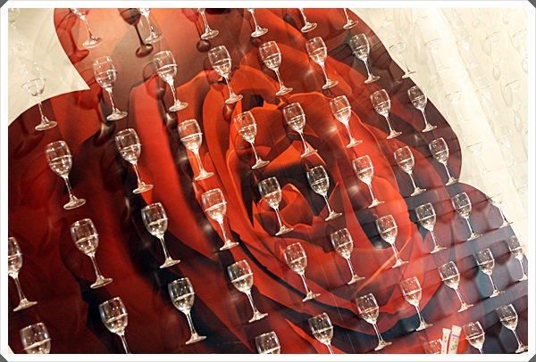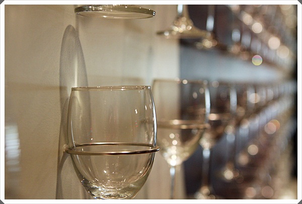 | 滿滿的高腳杯掛滿牆上,一整個就很浪漫,本來以為是畫上去的,走近一看是真的高腳杯耶。 |