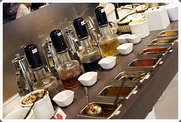 佐料台上的調味料還滿多的,不會像一般火鍋店燈光較暗,這邊很明亮一目了然。