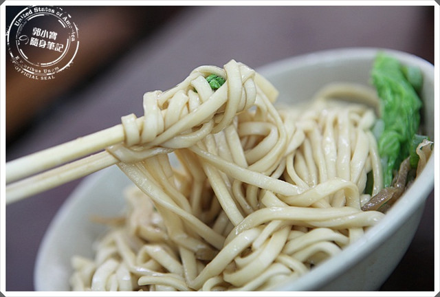 厚實Q彈的粗麵條吃起來非常有口感,碗裡面簡單的蔬菜跟榨菜,增添了需許風味,