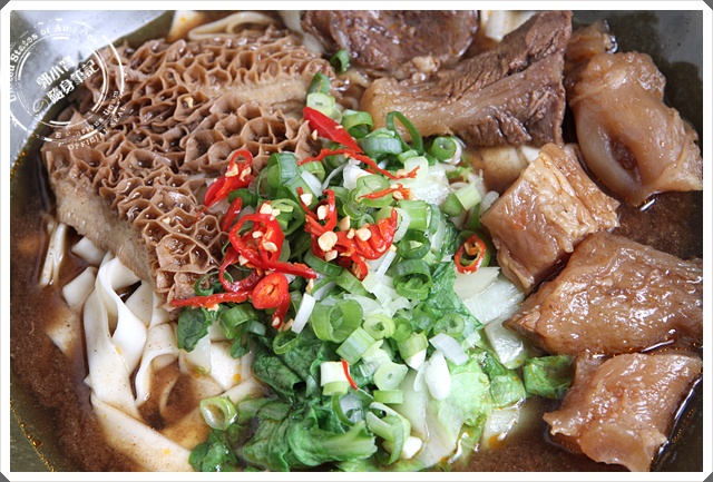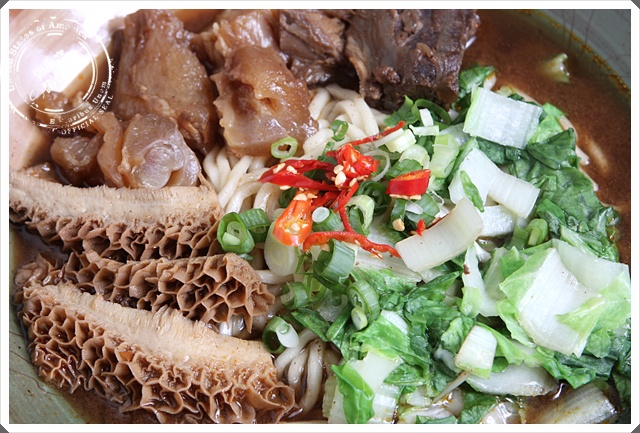 牛三寶裡面有牛肚、牛筋、牛肉,這家店是專屬紅燒口味的,沒有清燉牛肉麵,