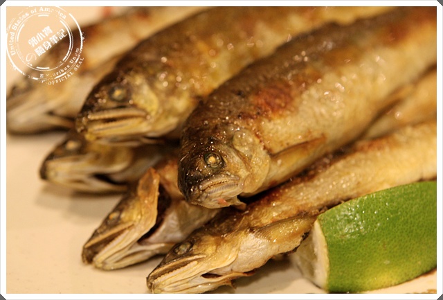 | 香魚烤的不賴,一盤份量很多,給的很大方烤的也不賴,淋上檸檬汁更美味 |