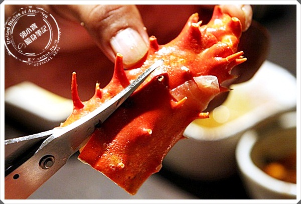 接下來就是無止境的帝王蟹輪迴了,飽滿的蟹肉讓我們一吃再吃,每當服務生靠近就是轉頭跟它們說,