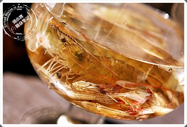 用加大的高腳玻璃杯裝著活蝦,看起來就很漂亮了,一整個都貴氣了起來,