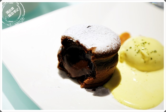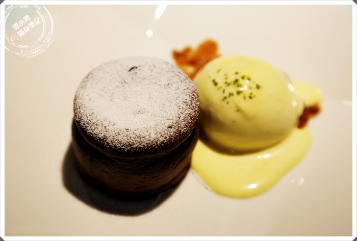 這一道甜品我就很喜歡了,外表不起眼的造型,切下一角後就是濃濃溫熱的巧克力,