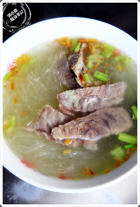 秀明的湯頭真的是充滿了濃濃的南部古早味,簡單的清湯灑上蔥酥跟芹菜,