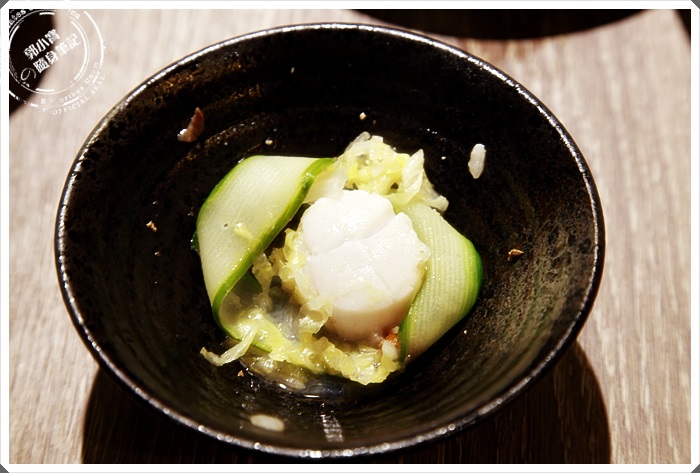 | 干貝稍微燙一下就可以了,服務生說這干貝是生魚片等級的,所以生吃也沒問題的。 |