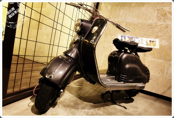 每個用餐樓層都有放置非常復古的偉士牌摩托車,年代都非常的久遠了,