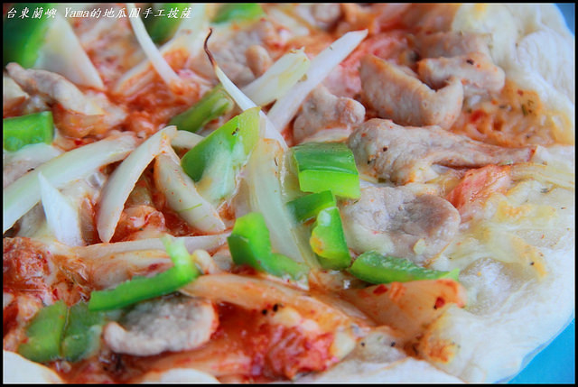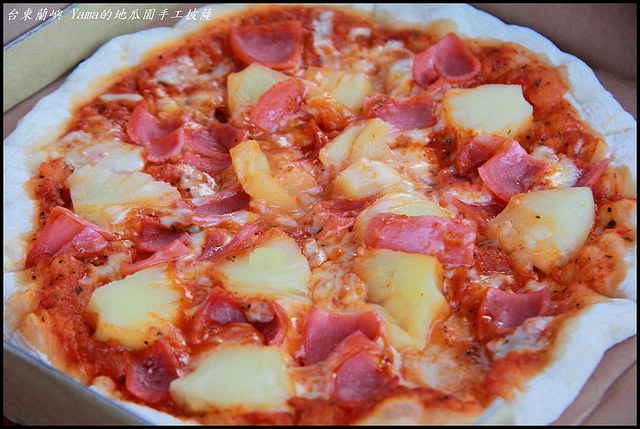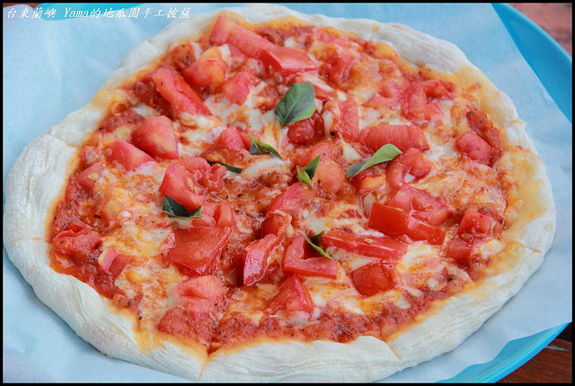 | 瑪格麗特披薩(NT.200),Yama手工地瓜園的披薩種類只有三種,瑪格麗特、泡菜豬肉以及夏威夷披薩,雖然種類不多,但在物資都要依賴貨船補給的蘭嶼來說有披薩已經很不錯了,披薩的價位約在200~240之間,這價位以蘭嶼的價位來說,已經算是非常實惠, |
