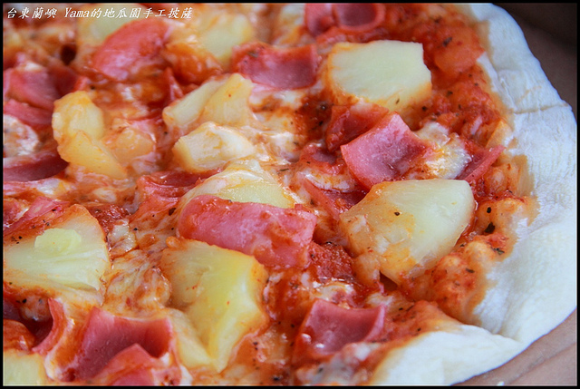 | 跟其他披薩不一樣的是,這夏威夷披薩是有鳳梨的甜味配上火腿的鹹味以及起士做彼此之間的調和,鹹甜味的搭配再搭上起士的香濃,讓這夏威夷披薩的味道變得有多重的風味讓人讚不絕口,