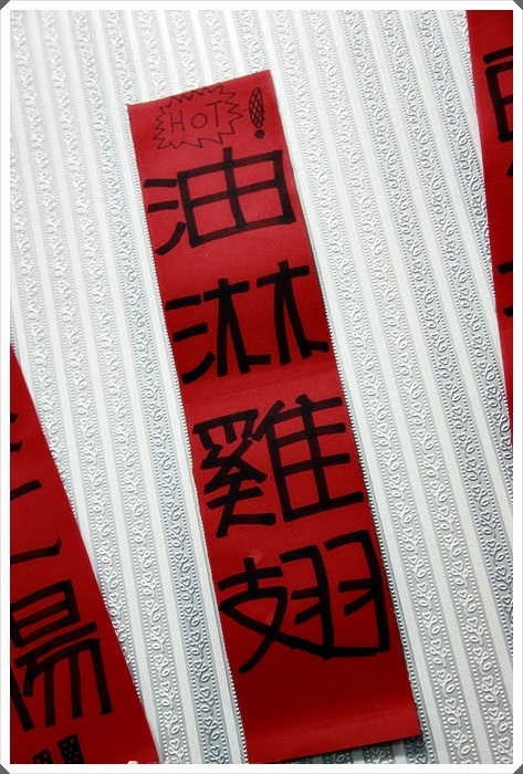 | 店內其實頗像住家的樣子,牆上貼上紅紙,上面寫著菜單及推薦的菜色,但是因為朋友帶路,所以就讓她作主吧!! |