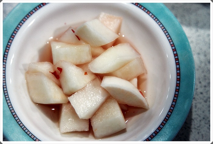 | 令一個招待的小菜就是醃製的辣蘿蔔,吃起來頗為爽口開胃的。 |