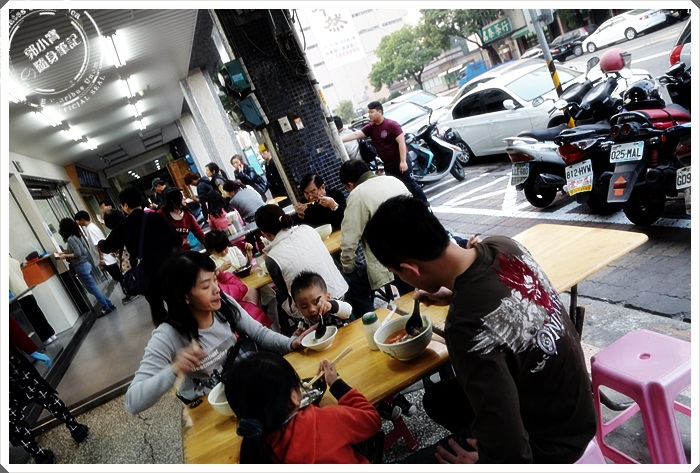 | 三家店面還不夠坐,連騎樓的位子都大爆滿,還有一家老小一起來吃的。 |