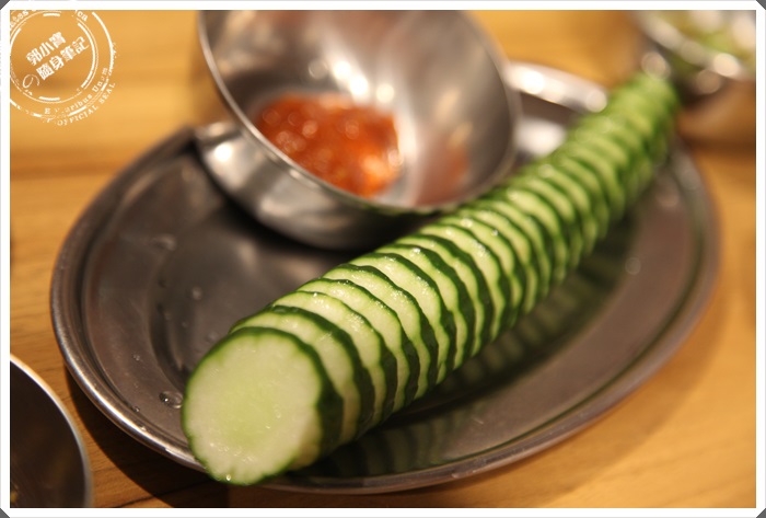 小黃瓜相當爽口多汁,個人覺得沒有太多的生菜味,吃起來倒像是水果的感覺,可以沾點店家特調醬汁,但是我個人偏愛生吃。 |