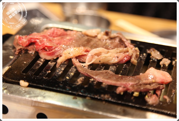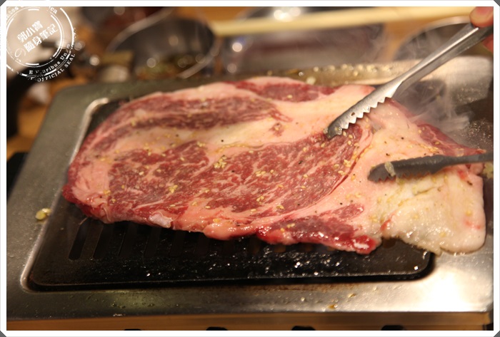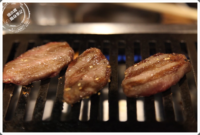 | 雙子Futago燒肉所使用的是澳洲和牛9A等級大塊牛肋部分,光是用看的就覺得非常的幸福了,放在鐵板上滋滋聲大響,瞬間香氣就撲鼻而來了。 |