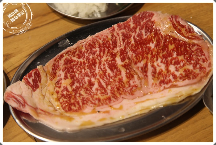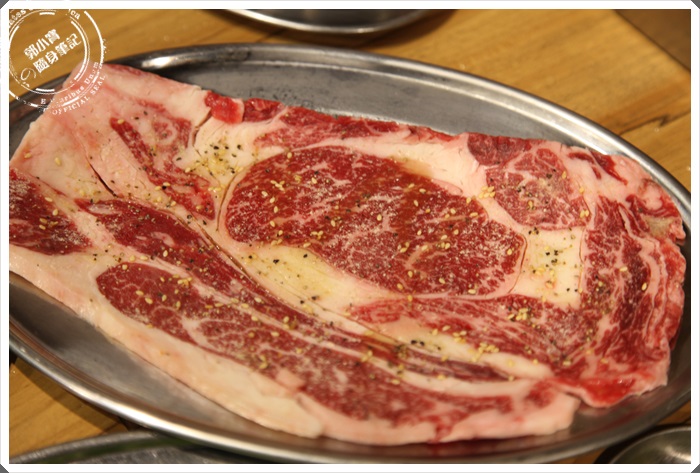這一塊巨無霸牛肋每天都是限量的,所以要搶要快,通常工作人員都會幫忙燒烤,這一塊肉包含了肋條、背蓋肉、包肋肉跟包心肉四個部位,所以各部位都有各部位的好吃,一塊肉可以吃到不同的口感也是相當的特別,唯一比較需要小心的就是因為是一整塊的牛肋肉的原因,所以看起來似乎是沒有修邊跟去筋的,當天吃到了筋條非常卡口,但是也算是特色之一啦@@