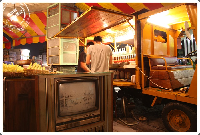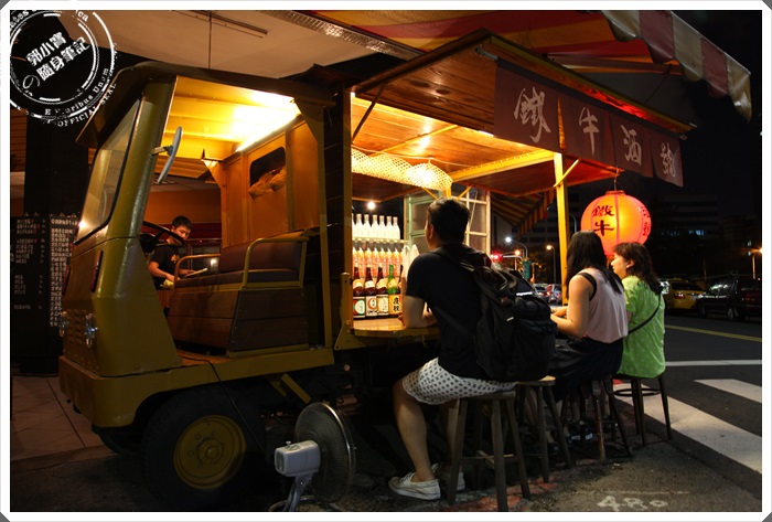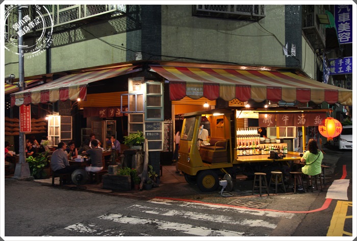 鐵牛酒號空間沒有很大,但是三角窗的位子卻是特別明顯,沒有室內空間,全部都是室外空間居多,前面放了一台老攤車,頗有意境的。 |