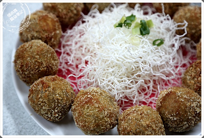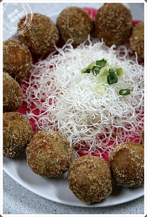 | 芋泥丸我就百吃不厭了,小時後流水席都會有這一道,趁熱吃最好吃,但是三層樓的做法又有一些差異,將理面的芋泥加上鹹蛋黃一起炸,吃起來別有一番滋味。 |