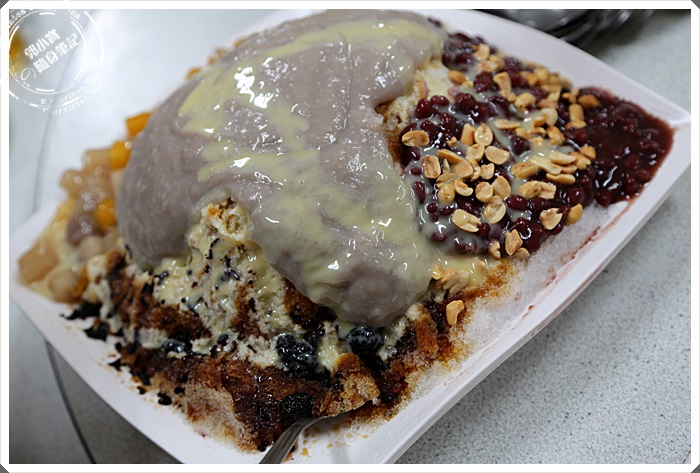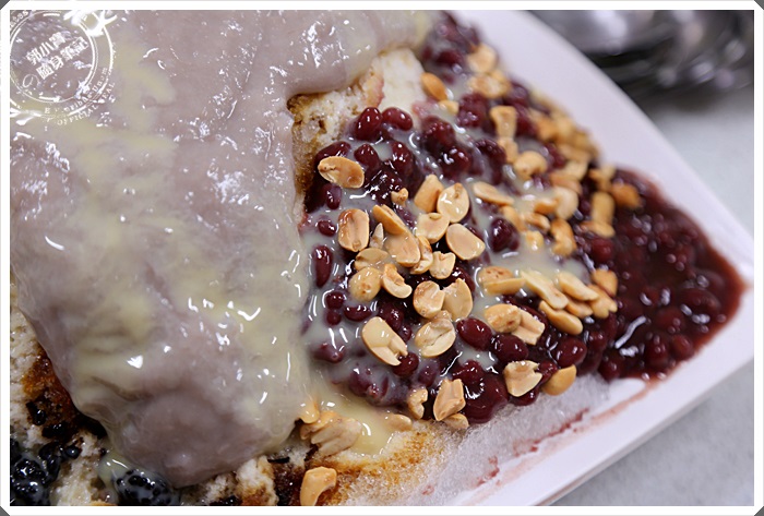 | 超大一盤的芋頭冰,上面堆疊滿滿的芋泥以外,還有蜜紅豆、地瓜園、桑葚等等的材料,芋頭的香氣十足濃郁,搭配冰品吃起來滑順到了一個極點,搭配著其他材料酸甜滋味入口真的非常的消暑,每一口都是滿足啊! |