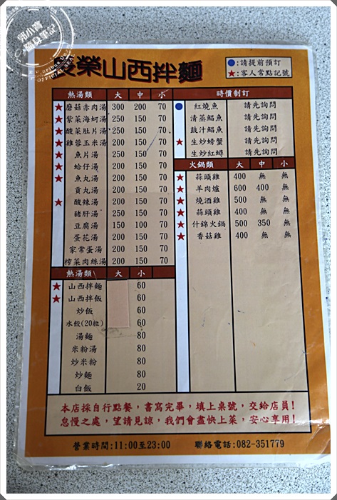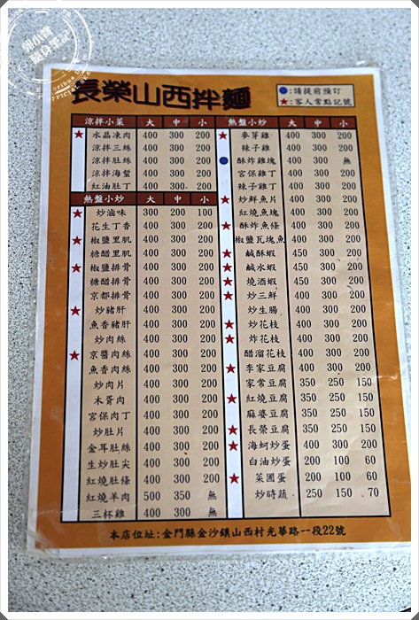 | 仔細看了一下菜單才發現,其實山西拌麵賣的東西可豐富了,幾乎是跟一家熱炒店比有過之而無不及啊!!! |