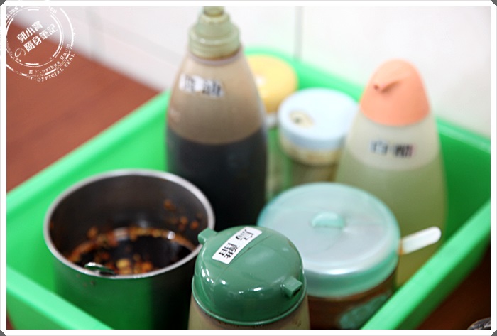 | 每一個桌子都會有調味料,現在很多麵店都把調味料統一放到一個櫃子,就會看到很多客人拿著麵再那邊走來走去的,其實是真的很不方便。 |