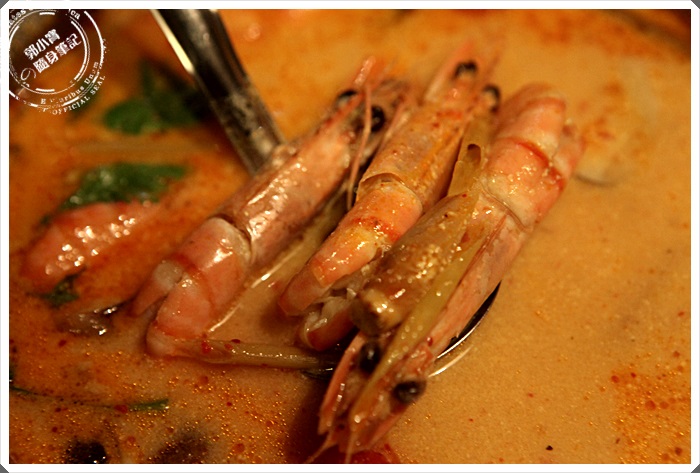 | 酸辣蝦湯我就很喜歡了,酸跟辣的程度都是讓人驚艷的,裡面的香料也相當的豐富,口感味蕾層次相當的豐富,蝦子也給的相當的大方,是一鍋喝完還想再喝的湯品。 |
