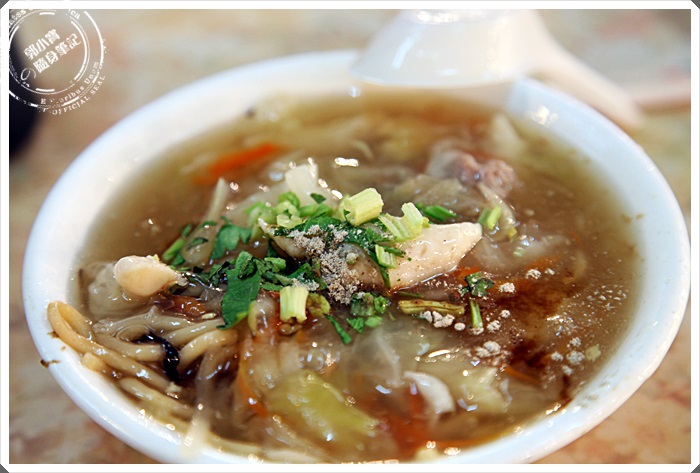 | 當我付錢的時候發現這樣一碗麵羹30元的時候,忍不住禁呼這也太便宜了吧,因為它份量確實還滿大的,碗裡面滿滿的料,有幾條肉羹跟吃起來非常的青D的高麗菜等等。 |