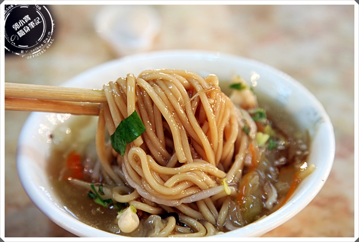 | 麵的部份採用的是油麵的樣子,湯頭喝起來當然是濃濃的古早味,而且湯頭帶些酸的口感,是老一輩喜歡的那種味道。 |