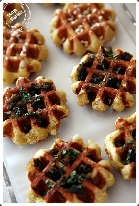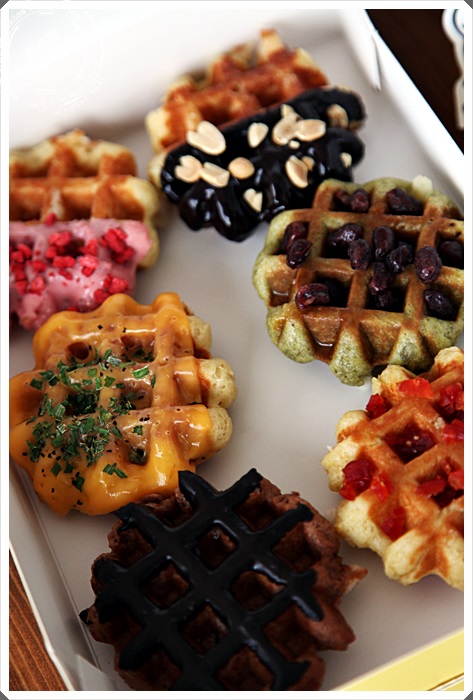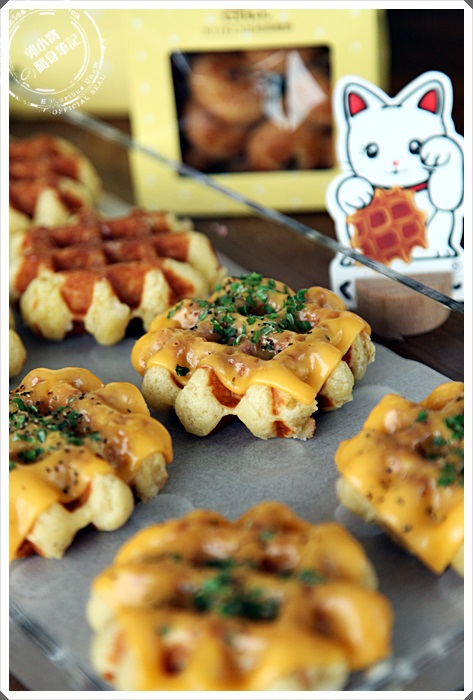 最特別的就是這一款了,是屬於台灣限定版,選用花蓮的剝皮辣椒來結合比利時鬆餅,還沒吃之前就對他蠢蠢欲動了,拍完照馬上就拿了一個來試試看,因為鬆餅也可以製做成鹹食,倒也是第一次看到,入口的味道完全就是被剝皮辣椒融化了,感覺真的是相當的奇妙,怎會有如此特別的口味,咀嚼中剝皮辣椒的味道會慢慢透了出來,相當的濃烈,舌尖會有麻辣感卻不覺得難受,整體上是值得推薦試試看的好味道。 |