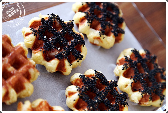 芝麻可以看到一顆顆完整的與鬆餅結合再一起,加上高溫烘烤後更添芝麻香味,一口咬下首先而來是滿滿的芝麻香氣,蛋香跟麵粉香會隨後跟上,糖在這邊的味道就沒有那麼的明顯,算是足夠的芝麻口味! |