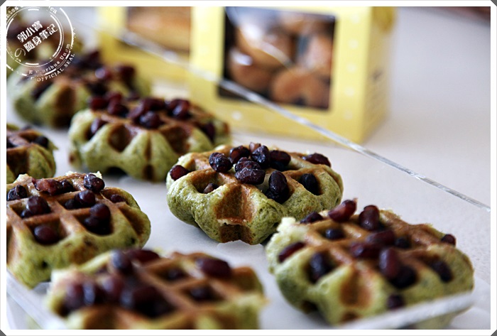 一口咬下其實抹茶的味道是輕輕淡淡的,蜜紅豆的香氣比較濃郁,但是整體蜜紅豆跟抹茶味都是繞著鬆餅本身的麵甜香跑。 |
