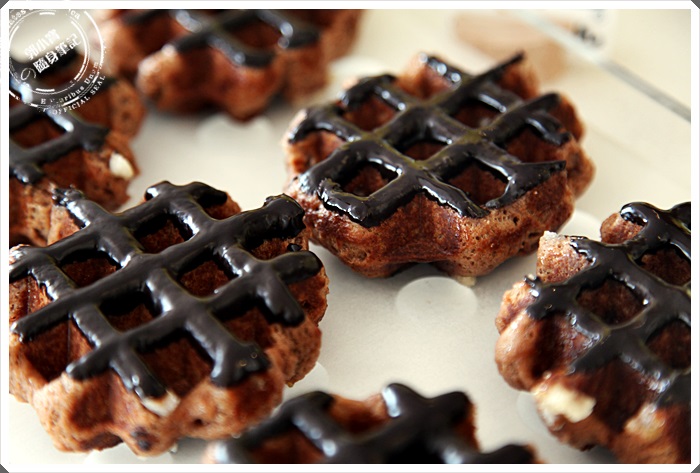 令人煩悶的雜事綁住的時候,就很需要這最邪惡的全巧克力鬆餅了,跟抹茶口味一樣在製做鬆餅的時候就已經天加了巧克力原料,在烘烤鬆餅的時候在塗上厚厚的巧克力醬,將它烤製程脆皮的口感,吃起來完全是可以解放心情的不愉快,喜歡巧克力的朋友可真的千萬別錯過這一款,保證滿意啊!!!!